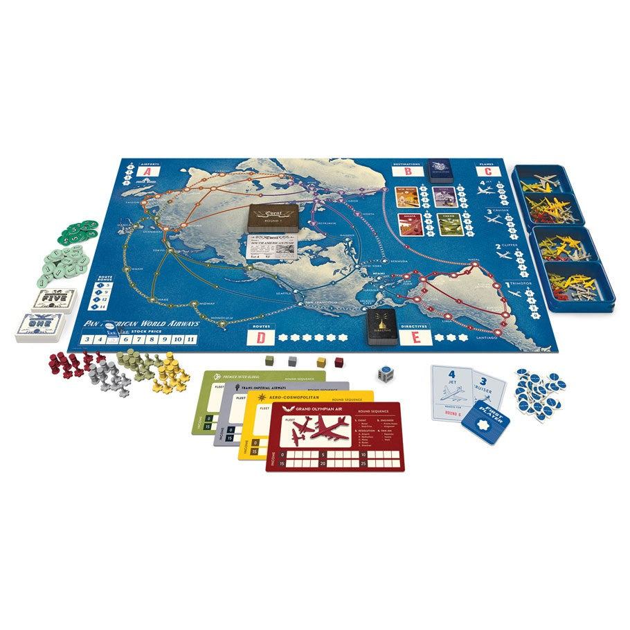 Pan American World Airways ruled the skies and made travel more accessible without sacrificing glamour. Players take control of their own fledgling airlines and compete with Pan Am and others to build a business empire. Outbid rivals for lucrative landing rights in exotic locales, buy planes with longer range to reach the far corners of the world, and use insider connections to advance your interests. As you bump up against the ever-growing Pan Am, you can sell your routes to the company to turn a tidy profit. It’s a game of global strategy that spans four decades of industry-changing historic events and technological developments, in which every timeline is different.