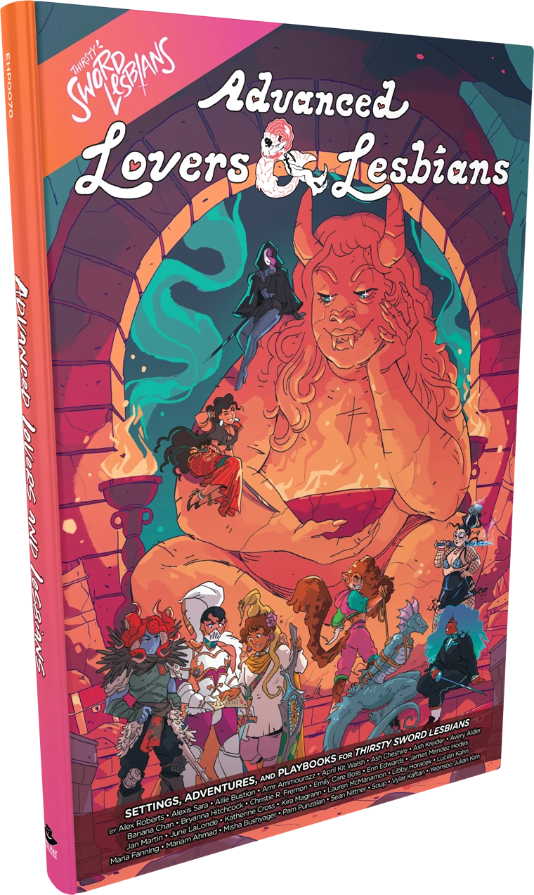 Crafted by an all-star team assembled from the best and brightest of the indie RPG scene, Advanced Lovers and Lesbians shines a spotlight on the game’s universal themes of found family and deep emotional connections. Innovative new playbooks and alternate rules offer novel story arcs for your next game of Thirsty Sword Lesbians.