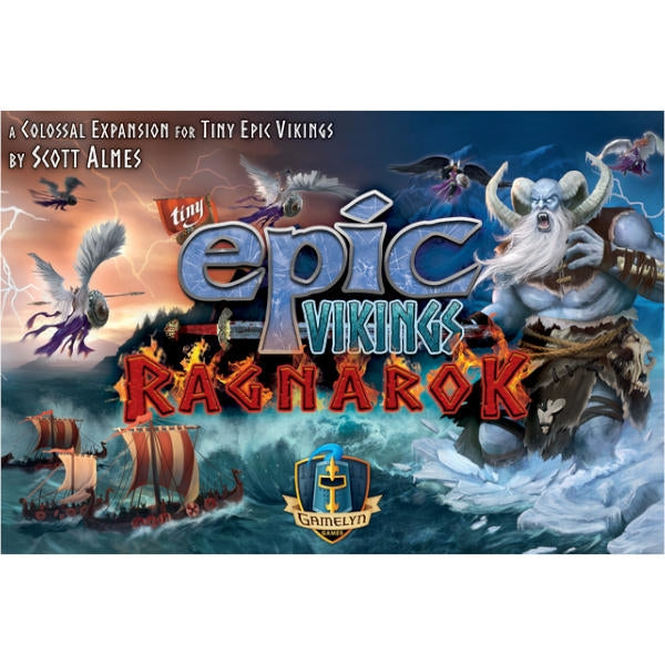 The Ragnarok Expansion introduces Giants that will control the islands and weaken the god's fury. It also introduces Valkyries and Giant Slayers that will join forces with your Vikings to combat the Giants! Also included are 6 new gods to further expand the strategies and variability of Tiny Epic Vikings!